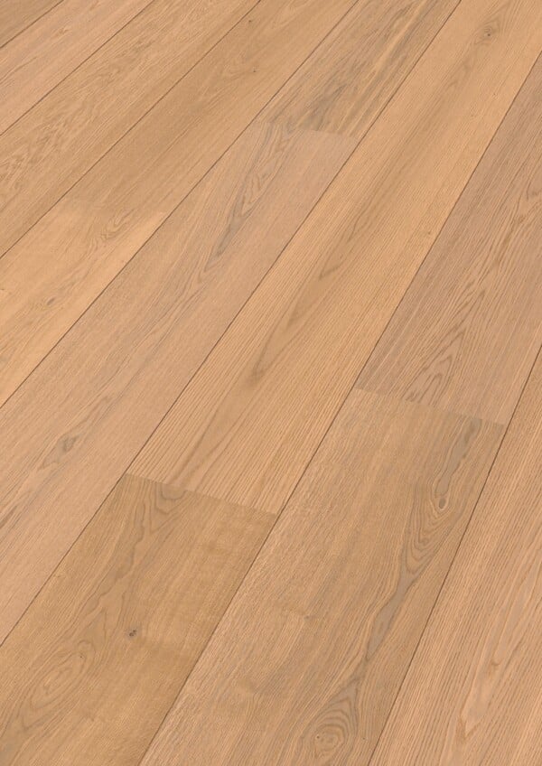 De Meister Lindura HD400 is een zeer chique en natuurlijke parktetvloer. De onderkant nan de plank is een Wood-powerder-tegenfineer van echt hout. vervolgens een Aquastop impregnering. Hierna volgt de HDF tussenlaag met nog een keer een wood-powderlaag en op de bovenkant een houten toplaag met een natuurgeolied oppervlak. De vloer kan vanwege zijn makkelijke kliksysteem zwevend op een ondervloer gelegd worden (zonder lijm).