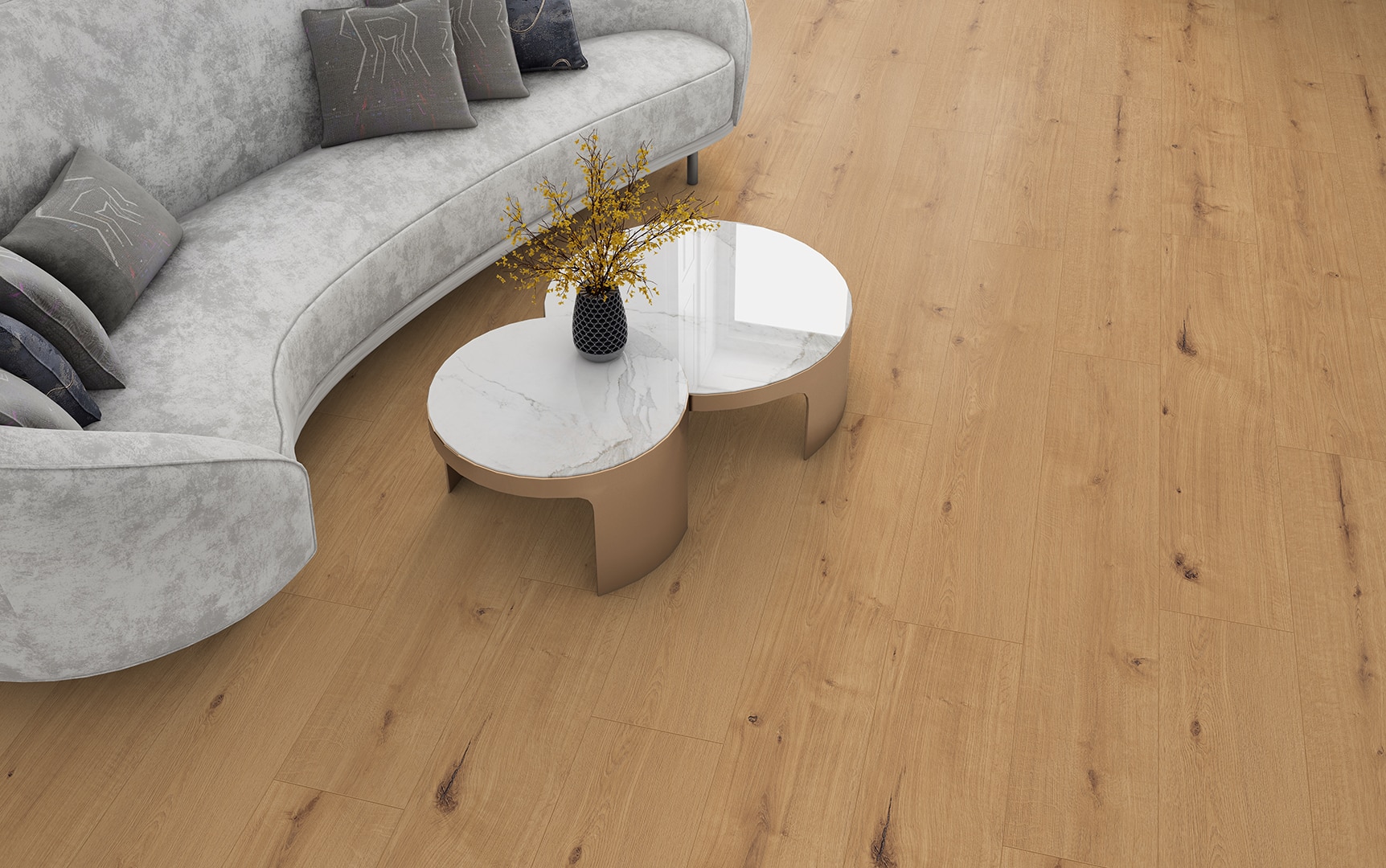 Ontdek de eigen laminaatlijn van Vloerenwinkel: brede, stijlvolle planken die elke ruimte een moderne en tijdloze uitstraling geven. Dankzij de beste kwaliteit materialen is dit laminaat niet alleen prachtig om te zien, maar ook slijtvast, onderhoudsvriendelijk en geschikt voor intensief dagelijks gebruik. Een vloer die moeiteloos in elk interieur past en jarenlang mooi blijft.